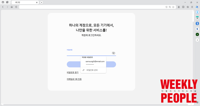 ƯÈ÷ »ç¿ëÀÚ°¡ PC ¹öÀüÀÇ µ¿±âÈ Ç׸ñ¿¡¼ ·Î±×ÀÎ Á¤º¸³ª °³ÀÎÁ¤º¸¸¦ ÀÚµ¿¿Ï¼ºÇØÁÖ´Â ¡®»ï¼ºÆÐ½º(Samsung Pass)¡¯ ±â´ÉÀ» Ȱ¼ºÈÇϸé, ¾ÈÀüÇÏ°Ô ÀúÀåµÈ Á¤º¸¸¦ PC ºê¶ó¿ìÀú¿¡¼µµ Ȱ¿ëÇÒ ¼ö ÀÖ´Ù. À̸¦ ÅëÇØ »ç¿ëÀÚ´Â ÀÚµ¿ ¿Ï¼º ±â´ÉÀ» ÅëÇØ °£ÆíÇÏ°Ô ·Î±×ÀÎÇÒ ¼öµµ ÀÖ´Ù.